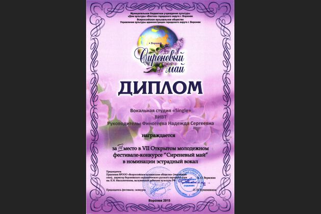 - вокальная студия "Single" с песней "Снится сон" в номинации "Эстрадный вокал"